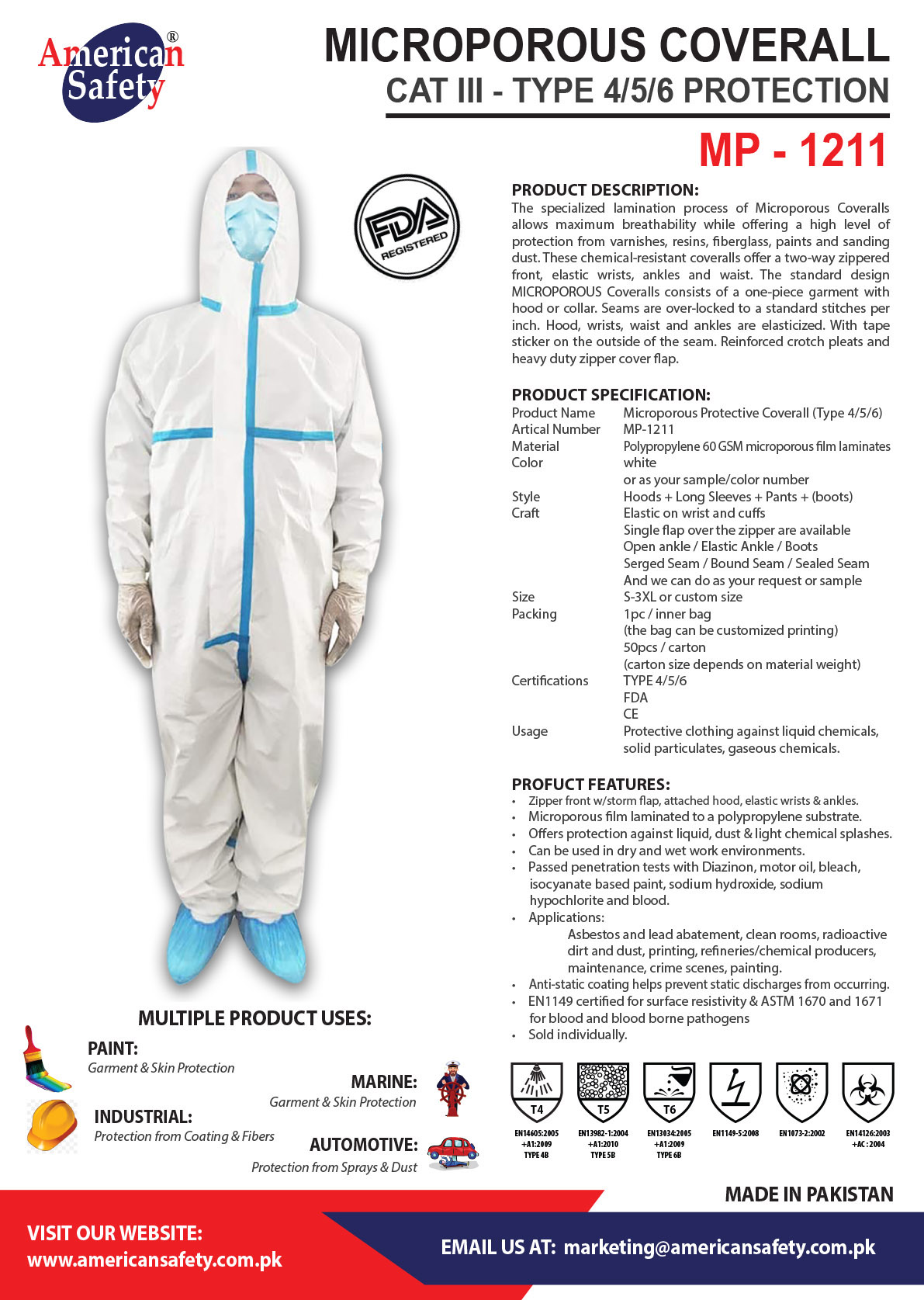 | If you have any questions, just email us at info@americansafety.com.pk and we can help you find the perfect pair of coveralls. |
